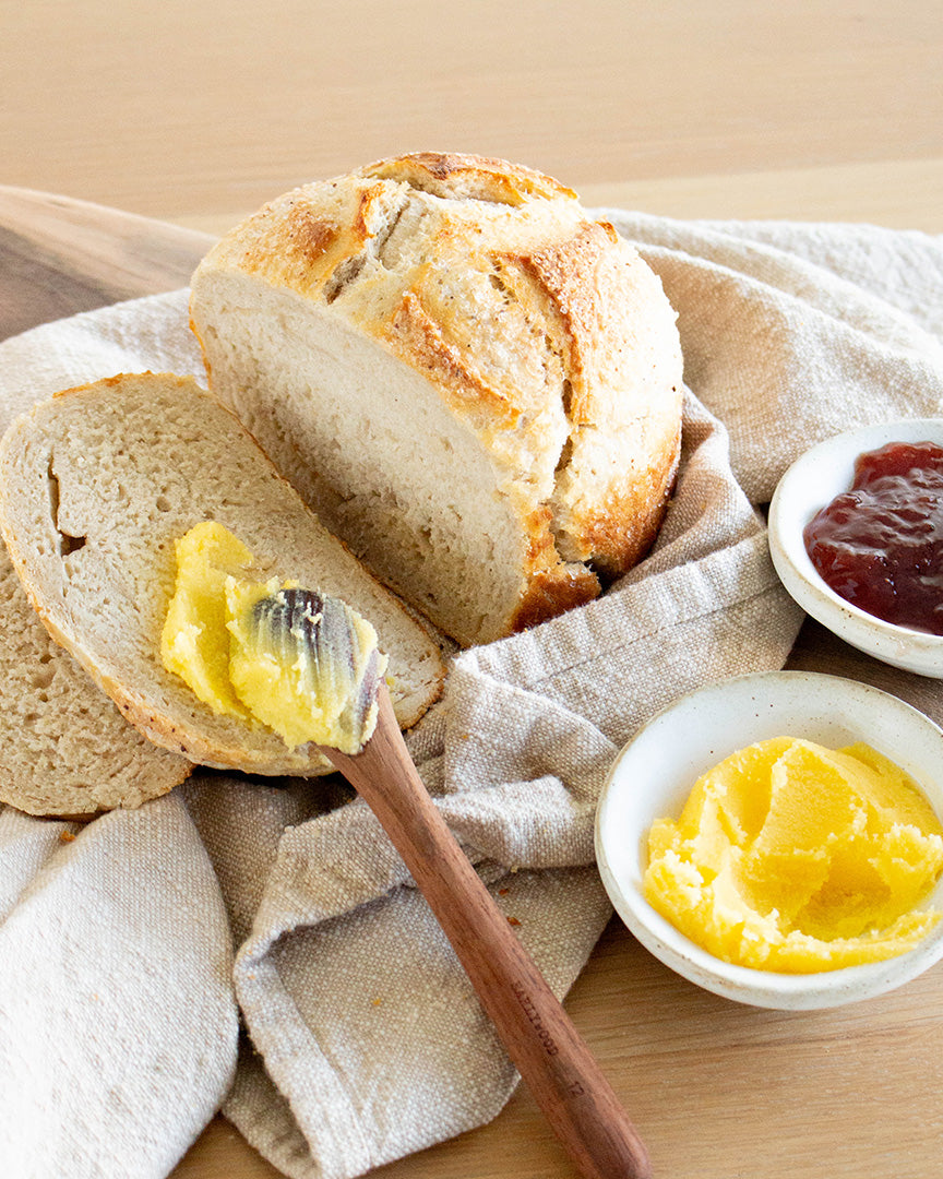 | The aroma of freshly baked sourdough can enchant any home with its tangy, chewy allure. Contrary to modern skepticism about bread and gluten, the real issue lies in the type of yeast used. Our daily ritual involves a three-day process using a refrigerated starter, which you can also keep on the counter, treating it like a pet—feeding and tending to it daily to maintain its freshness. |
