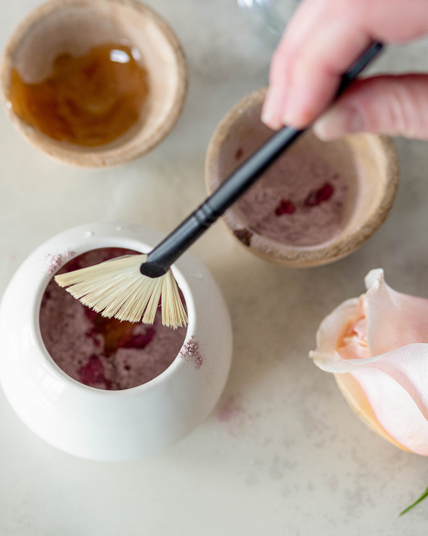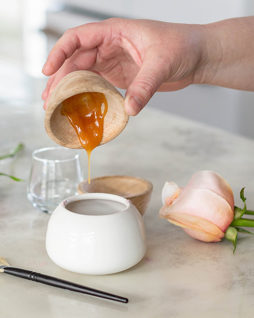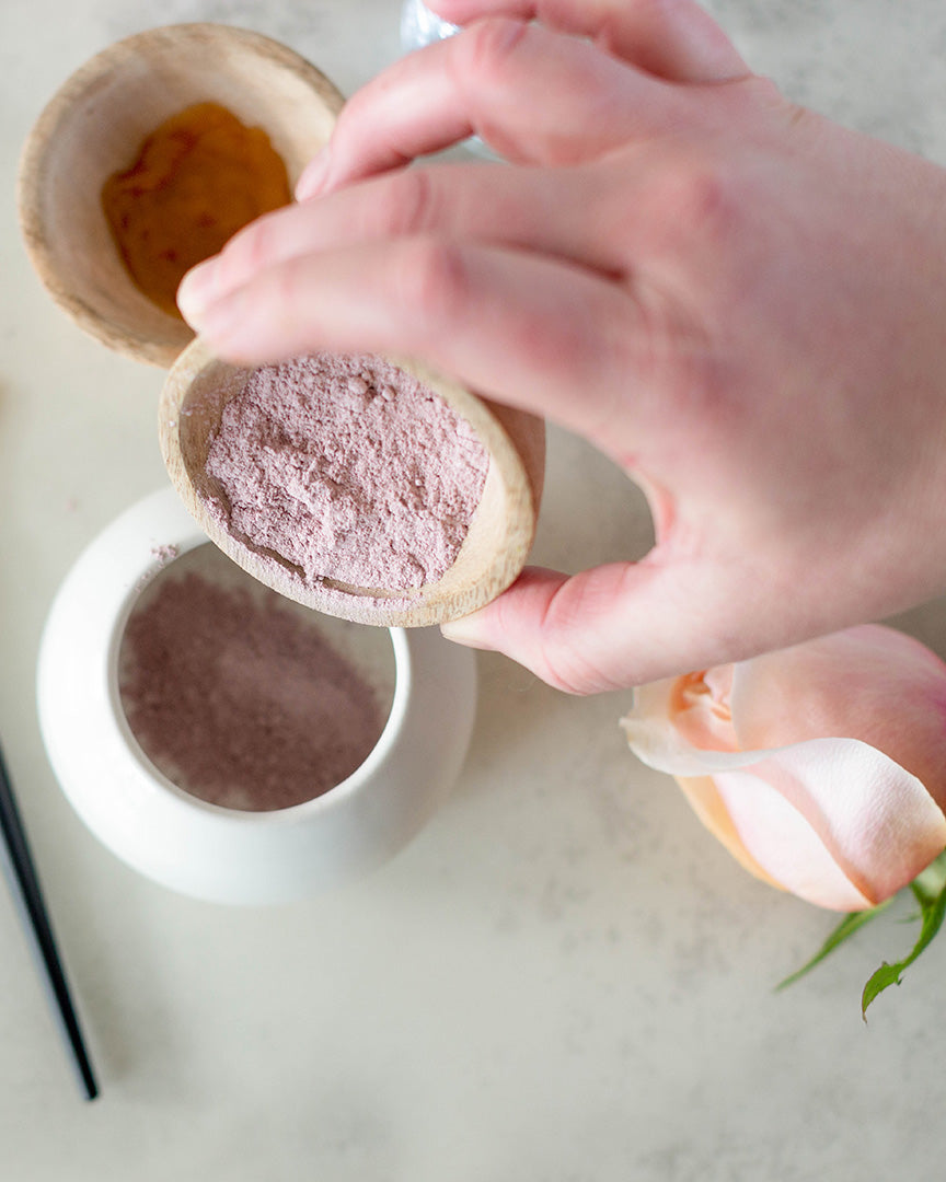 | In a small bowl, place Anima Mundi Rose Powder & Activist Manuka Honey Mask. Start to mix these two together with a wood spoon or natural face brush. Slowly add in rose water and thin to desired, spreadable consistency. This recipe makes enough to paint your face, neck & chest. I suggest you wear this mixture for about 10-20 minutes, then wash off with warm water. |
